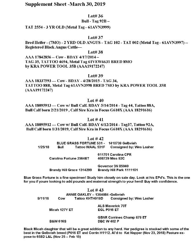 | PICTURES email or send CONSIGNED pictures and we will post it on website for FREE this sale. email pictures to: weboyd@bellsouth.net be sure to identify your picture with the cow's name |
