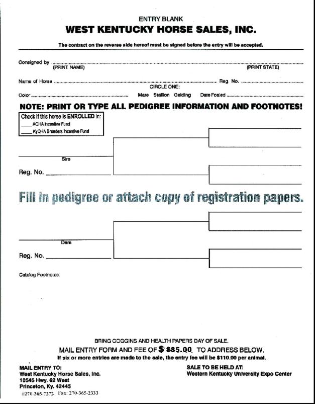 | Phone: (270) 365-7272 e-mail: westkyhorsesale@yahoo.com |