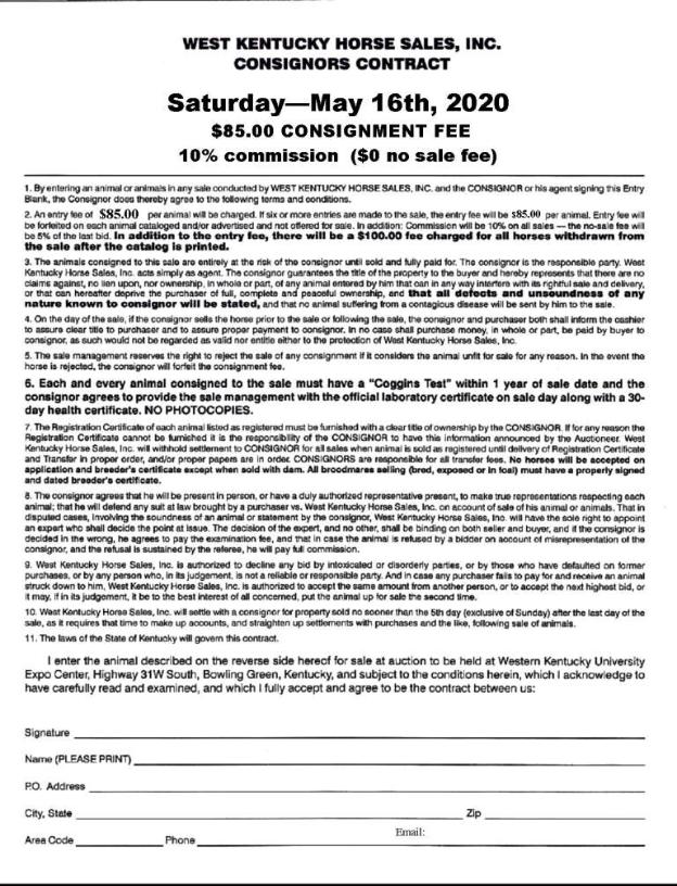| (CONTACT INFORMATION) West Kentucky Horse Sales , Inc. Wayne & Diane; Bradley & Rachel; Alaina Boyd 10545 HWY 62 W - Princeton, Ky 42445 |